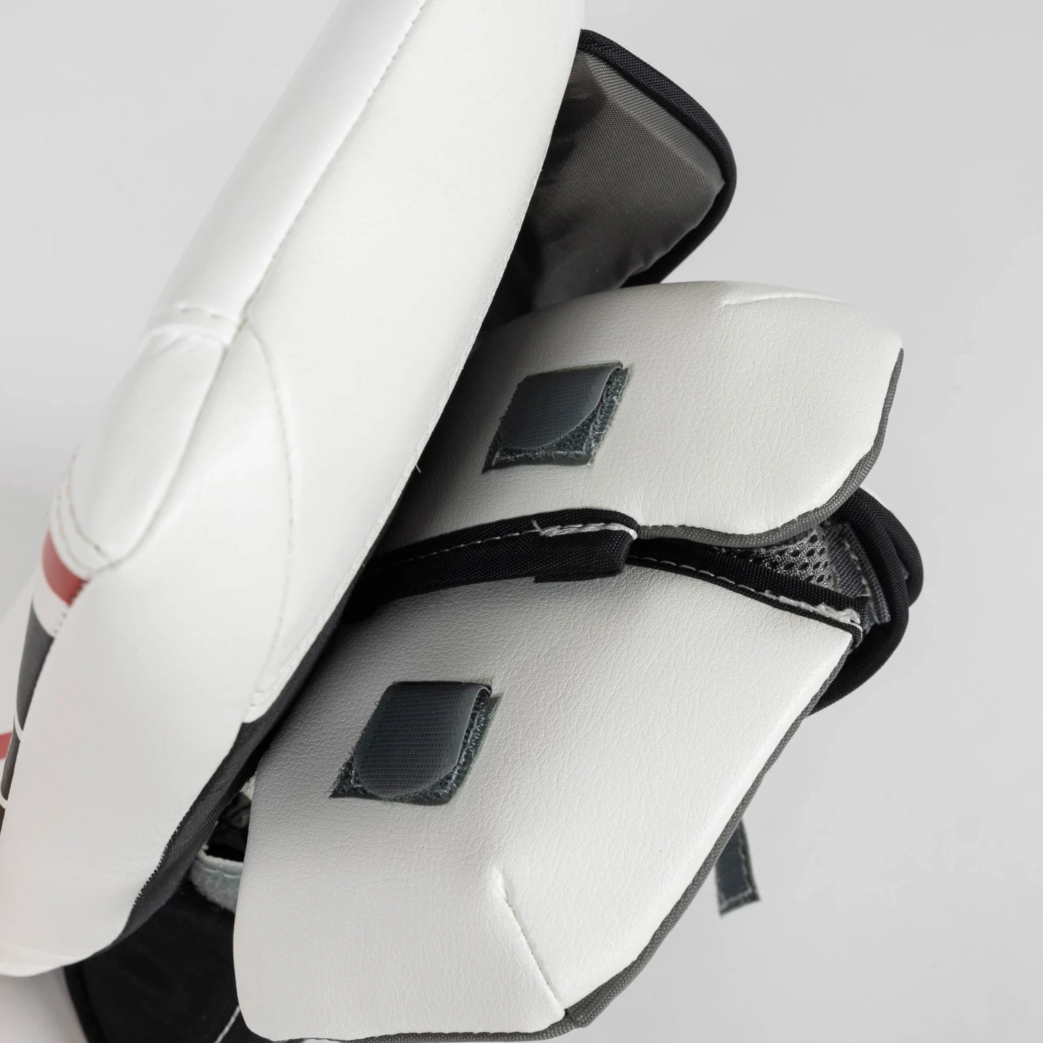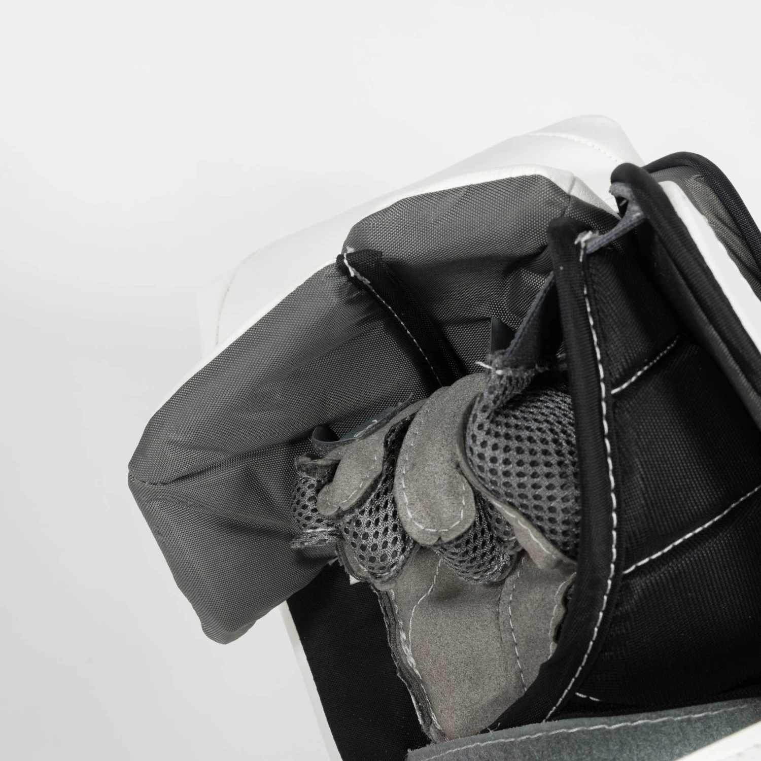 The G6 blocker is built with a lightweight and comfortable construction that is perfect for developing goalies. This blocker includes a thick board and specializes in rebound speed.