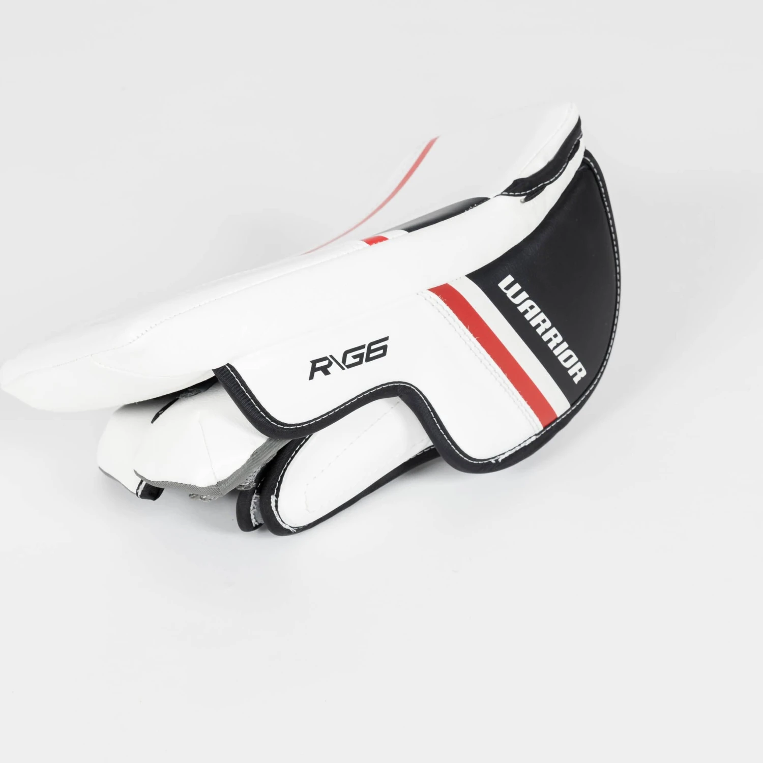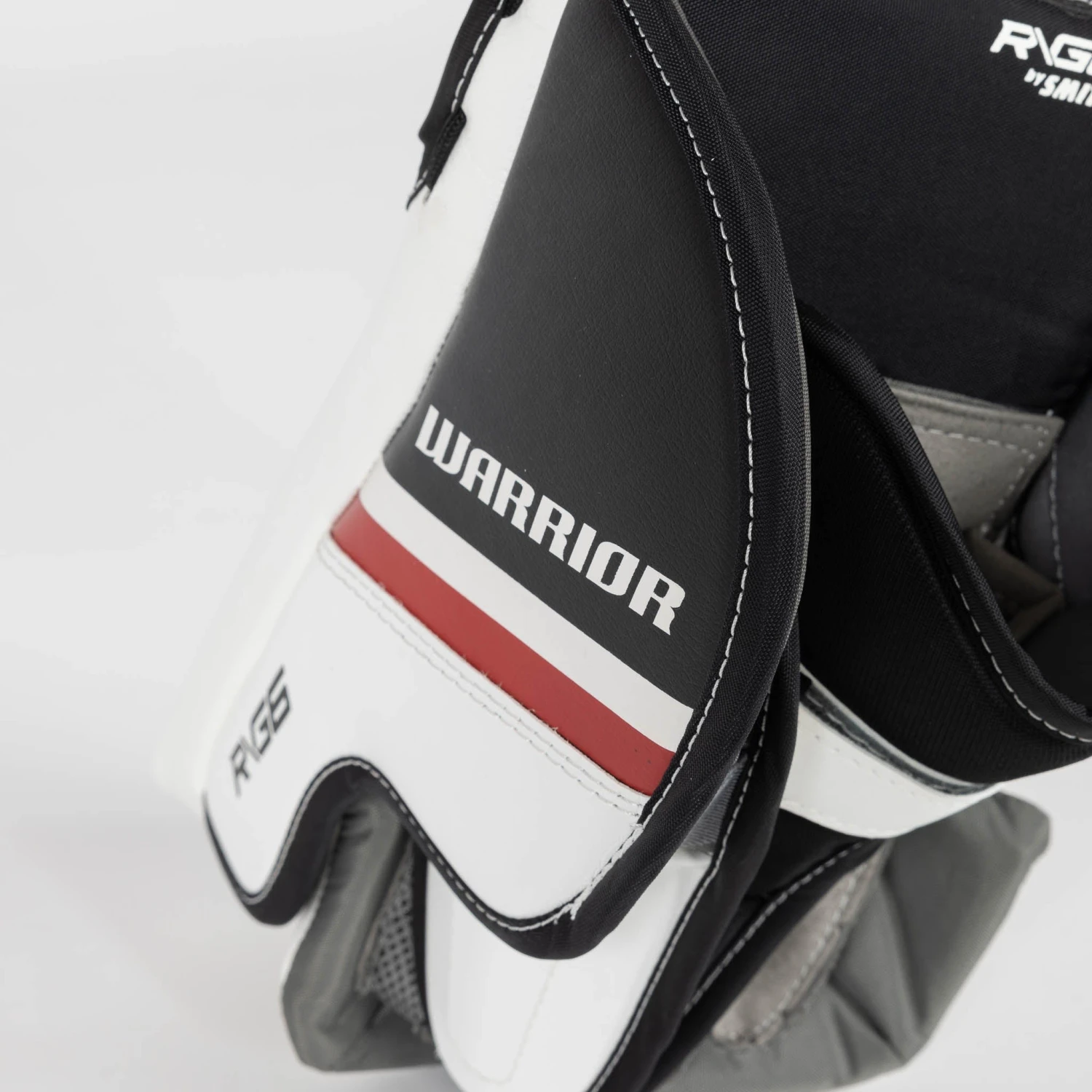 The Warrior Ritual G6 E+ Junior blocker comes in Regular and Full Right configurations in the following colourways: White/Black/Red, White, White/Black, White/Red, White/Royal, and Black.