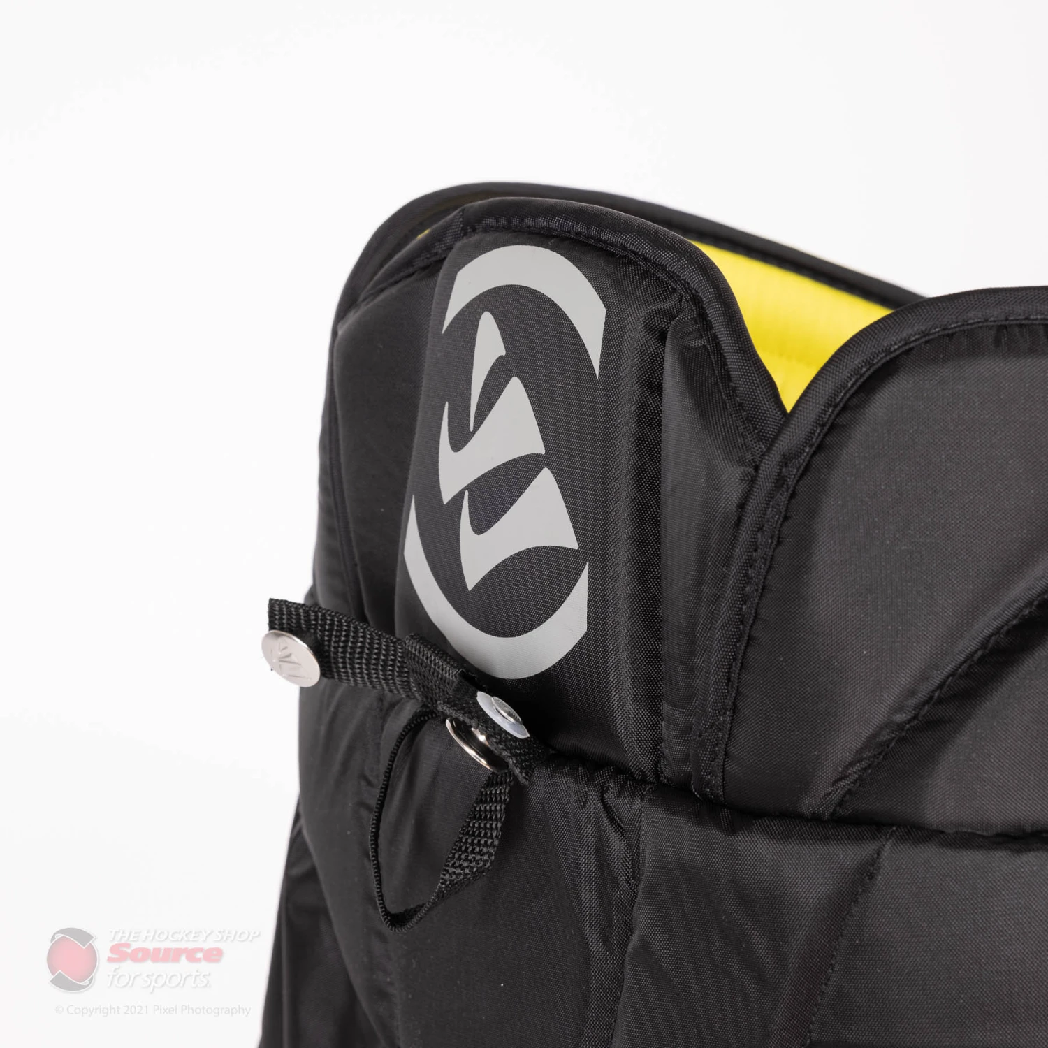 The X3 E goalie pant uses maximum coverage thigh protection while slightly tapering up towards the belt, it does not use an inner belt allowing for a conventional fit.